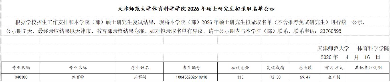 365best体育亚洲官网官方认证平台2026年硕士研究生拟录取名单公示